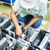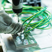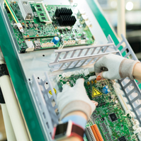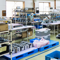 研究開発のお手伝いから、設計、製造(プリント基板実装、ハーネス製作、機器組立)、検査、梱包、出荷まで、ワンストップでお客様のニーズにきめ細かく対応します。また、試作から量産、さらに多品種少量にも対応できる強みをもっています。